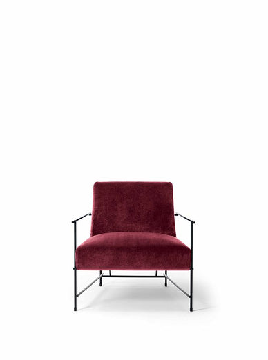 Kyo gør op med den traditionelle, tunge lænestol. Ved at anvende et slankt trådstel i sort metal har designerne skabt en illusion af, at sæde og ryg svæver frit og uafhængigt af hinanden. Det giver et møbel med en ekstrem transparens, der lader lyset passere og holder rummet åbent.