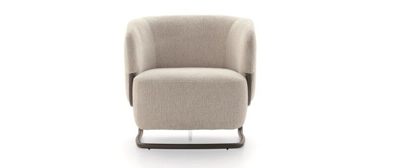 Marabu-lænestolen kombinerer funktionalitet og æstetik med en organisk, afrundet form. Det bløde, omsluttende sæde har en voluminøs profil, som står i elegant kontrast til et enkelt, buet stel. Stellets buede metalramme får lænestolen til at virke let og svævende, som om den næsten ikke rører gulvet . Gennemsigtigheden i den centrale base i metakrylat understreger den luftige fornemmelse. Den bløde polstring inviterer til afslapning og komfort i både dagligstuen, kontoret eller lounge-områder.
