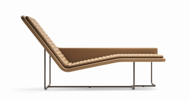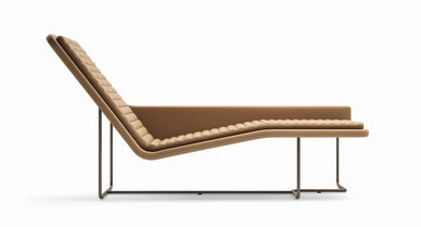 Origami-lænestolen er inspireret af japansk foldekunst, hvor en flad overflade foldes til komplekse former . Det resulterer i en elegant chaise longue med et legende, geometrisk udtryk. Stolens stel i lyst metal er næsten usynligt under betrækket, hvilket får stolen til at svæve let over gulvet. Det faste læderbetræk og den skulpturede skumprofil giver en fast, afrundet støtte, mens stolen samtidig føles indbydende. Dette møbel står smukt alene som et kunstværk i rummet eller kan kombineres med et modulopbygget sofaarrangement for at skabe en indbydende helhed i indretningen.